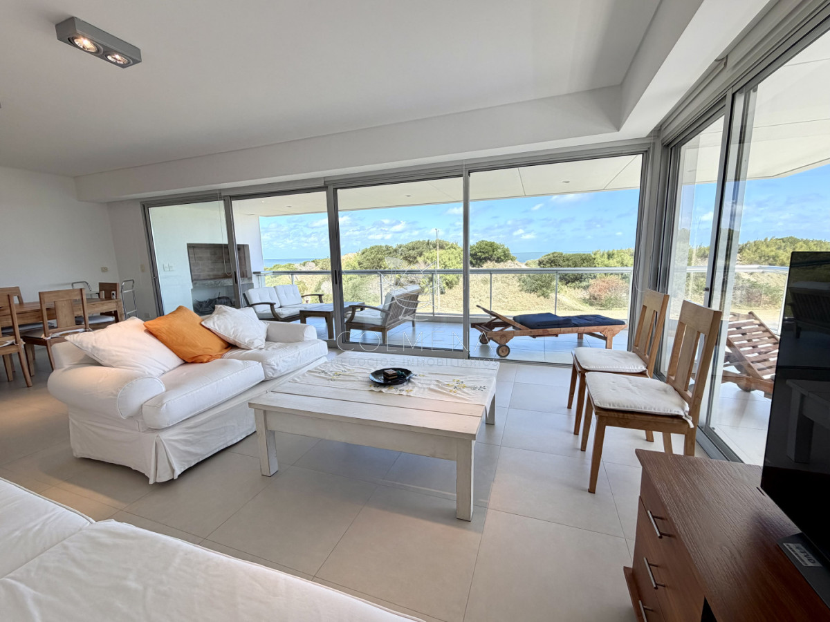 Excepcional unidad de 3 dorm y dependencia externa en 1ra fila de Brava. 150m2 internos hacen que la planta sea super amplia y comoda! Gran terraza al frente con parrillero propio, living comedor apaisado, toilette. Suite Principal de comodas dimensiones con baño con jacuzzi y ducha compartimentada. 2 dormitorios en suite con vista al mar y la piscina, cocina definida con doble circulacion. Lavadero 2 garajes en subsuelo y dependencia de servicio o dormi externo a la unidad.