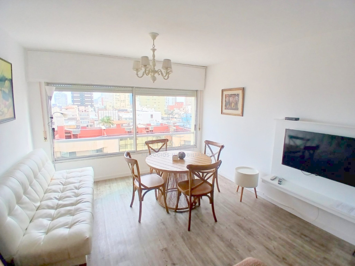 Apartamento monoambiente, 1 baño, cocina completa, living-comedor, luminoso, vista, bien equipado, y garaje en subsuelo. (Tiene potencial para cerrarlo y dejarlo de 1 dormitorio definido)