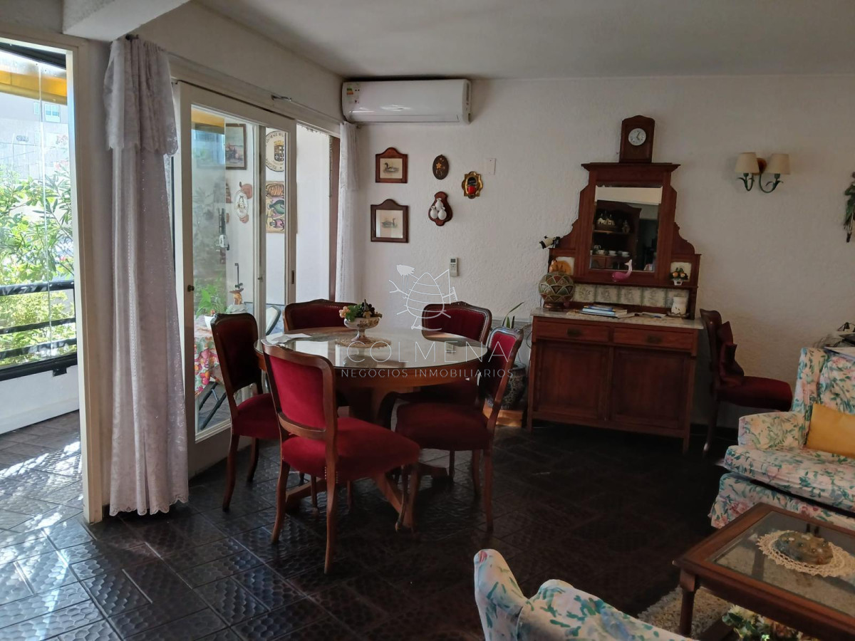 Apartamento a pasos del mar, 2 dormitorios, 3 baños (1 en suite), living-comedor, balcón cerrado con parrillero cuenta con 2 cocheras en garaje. 74 metros cubiertos, 82 totales. Con caracterÃsticas de casa. En primer nivel con salida a patio verde interno. El Dormitorio principal en suite con segundo balcón y salida al patio. Segundo dormitorio con baño anexo. Placares. La cocina y baños con cañerÃas nuevas y también la instalación eléctrica. El edificio tiene una antigüedad de 36 años muy bien mantenido con la renovación de cañerÃas, tanques de agua y circuito eléctrico finalizados el año pasado. Salón Barbacoa, Salón de juegos y Lavadero comunitario. Conexión wifi y vigilancia las 24 horas. Zona ideal para turismo como para vivir todo el año. Se llega a pie a las playas Brava y Mansa con paradores, la Punta y zonas comerciales y gastronómicas. A pasos del mar y todo, pero en un lugar verde con senderos peatonales ideales para caminatas y relax. Con medios de transporte público en la puerta. Expensas $16.000-.