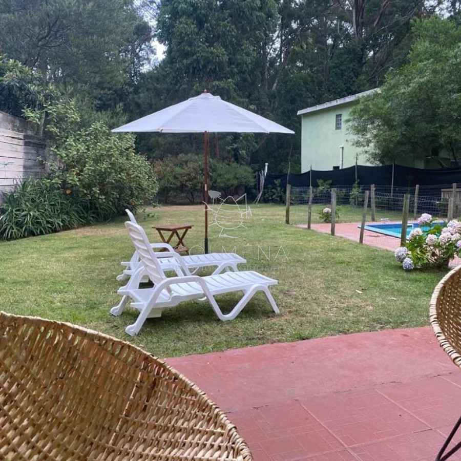 En portezuelo bosque, casa cómoda y funcional. 3 dormitorios, 2 baños (uno en suite). Living-comedor con cocina integrada. JardÃn totalmente cercado. Parrillero techado y piscina.
