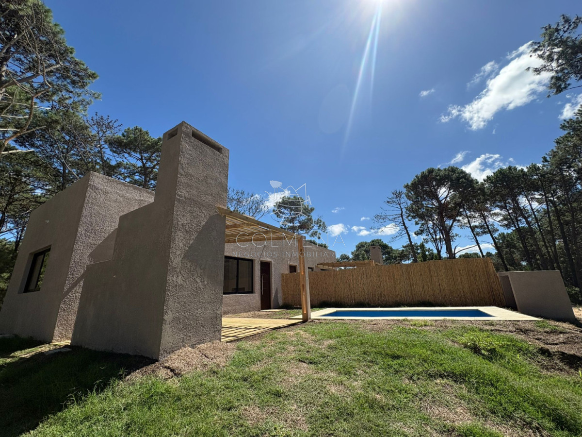 Casa a estrenar en Club del Lago. En régimen de Propiedad Horizontal. Entorno ideal para vivir todo el año ó para descansar. La casa cuenta con 2 dormitorios, 2 baños, living-comedor con cocina integrada. Cochera, piscina y parrillero independientes. 75m2 construidos + 2,38m2 el área del parrillero. Superficie total del terreno 1354m2.