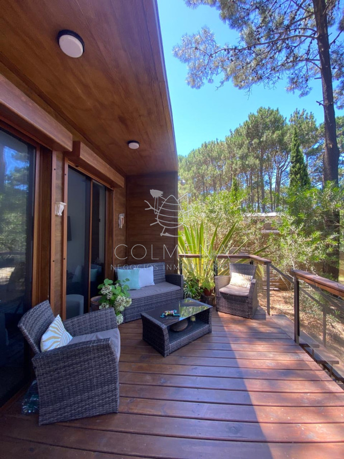 Acogedora casa en venta en Punta Ballena, Chihuahua. Consta de dos dormitorios con un baño. Living comedor con cocina integrada. Todos los ambientes cuentan con aire acondicionado. Deck de madera al frente de la casa para disfrutar del agradable entorno. Rodeada de naturaleza a pocas cuadras de la playa. No dude en consultarnos